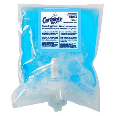 Certainty soaps feature a precise selection of formulas in efficient dispensing systems to meet your needs. Formulated to provide a thick, pleasing, luxurious foam while using substantially less soap per hand wash than in lotion alternatives. Sealed pouches prevent contamination and provide a new pump with every refill, thereby eliminating clogs and drips. 1785 pumps per foam soap cartridge.