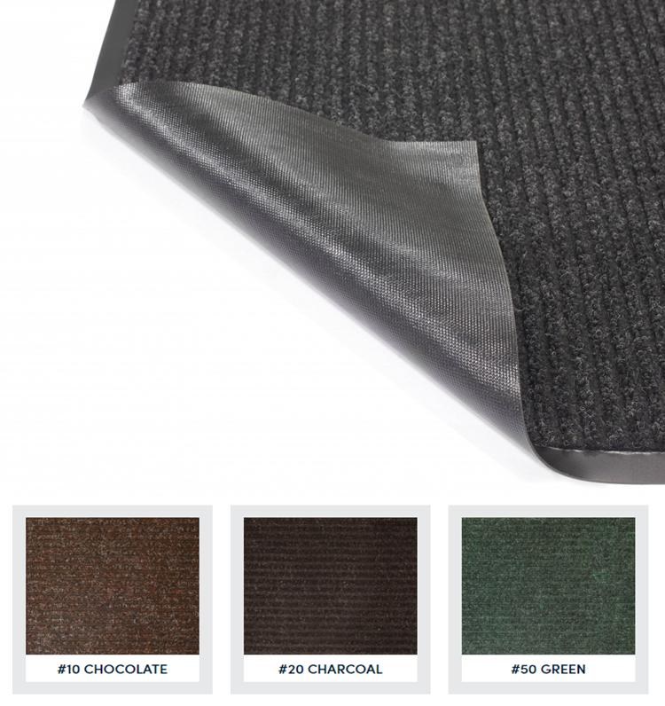 Needlepunch linear Rib matting with vinyl backing designed to wipe and scrape footwear clean. Designed for indoor use in light traffic areas, perfect for secondary entrances, low traffic hallways and lobbies. Can be cut to your required length, optional edging on ends also available.
