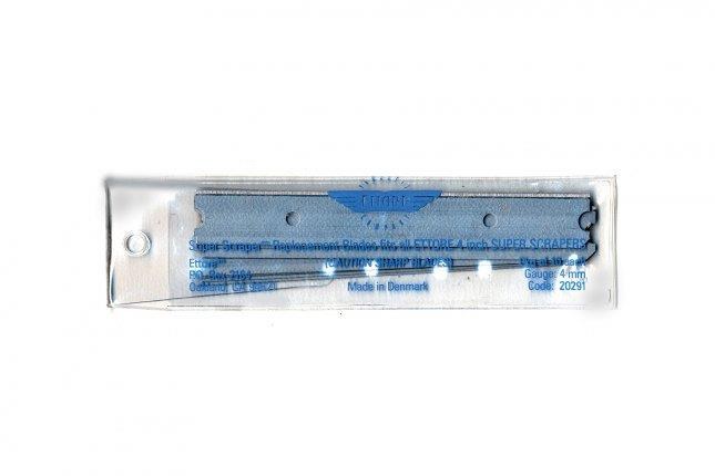 Replacement blades for 4" Super Scraper. The blade is sharp on one side for doing windows and dull on the other for floors. 10/pkg